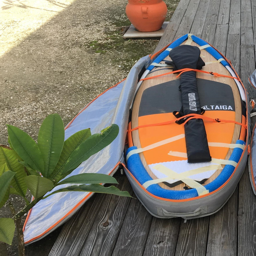 1. Use a travel bag. At TAIGA, our bag is padded with 8 mm foam and 16 mm on the rail, nose and tail of the board