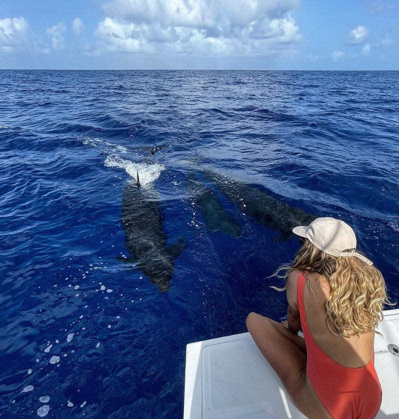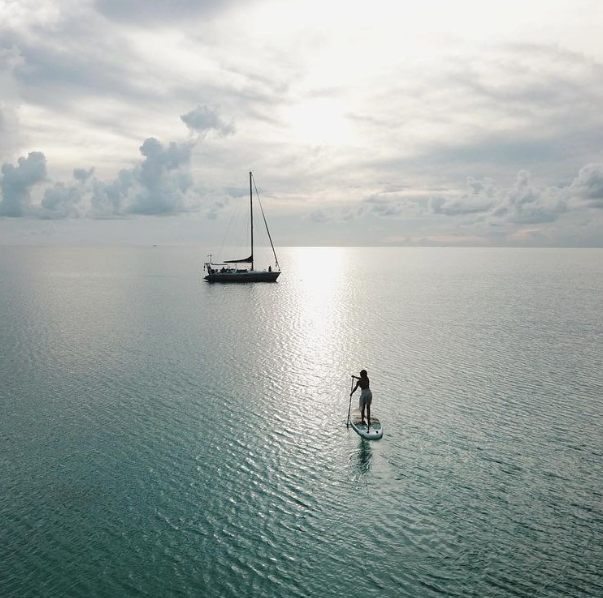 Basically, a charter is a cruise on a private boat. It's our chance to share our passion for sailing and introduce people to our playground. P-O knows the Bahamas like no one else: he has spent a good part of his life sailing here. He knows all the secret locations, and his ideas for activities are endless. Daily life is simple: we do yoga on a deserted beach in the early morning, take out the SUP to explore around our anchorage, walk at low tide on white sandy waves, snorkel with fish, turtles, and sharks, and every evening, the sun gives us a show before setting over the ocean.