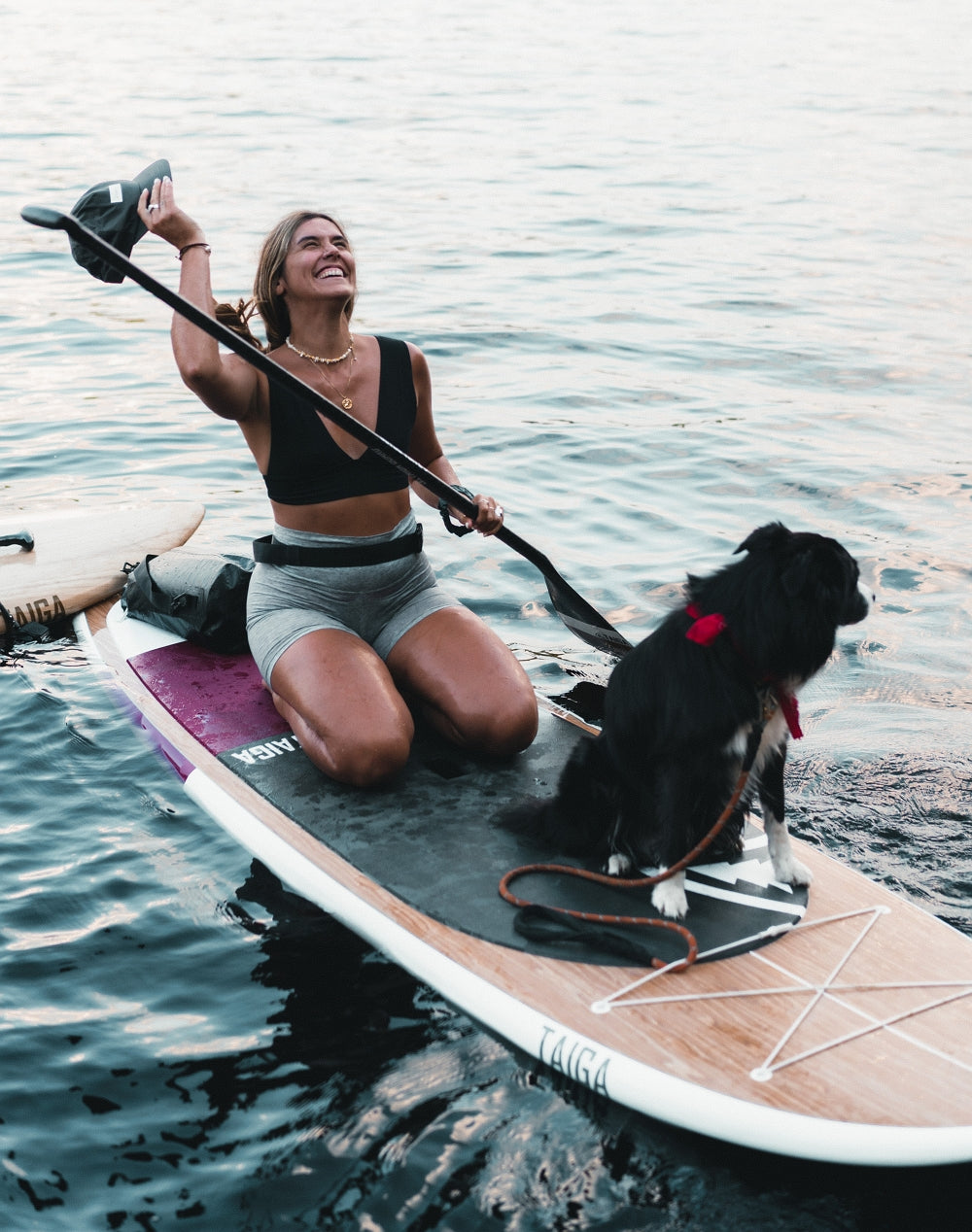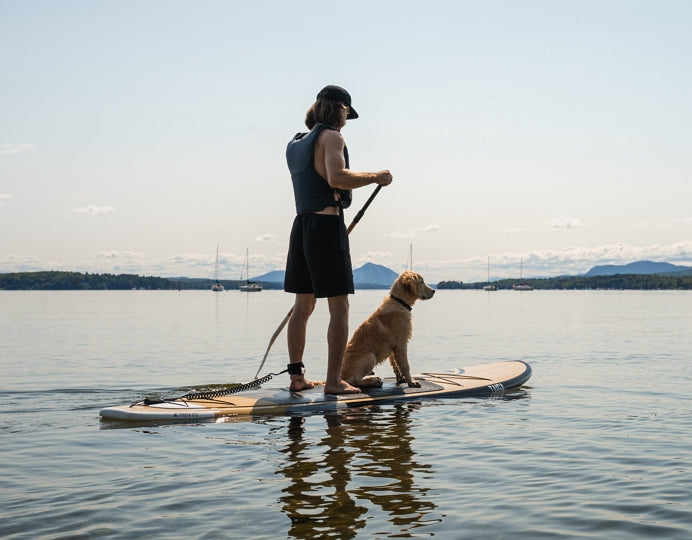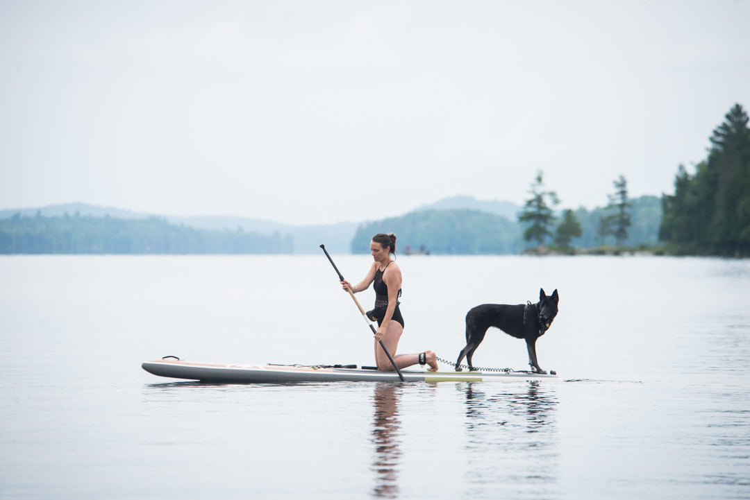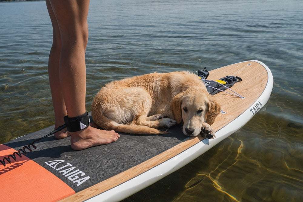 In fact, it's more a question of weight. Remember that the bigger your board (in terms of liters), the more weight you'll be able to put on it. So, if you decide to go for a ride with your beautiful hard Hana 9'5'' (165 L) and put your Labrador on it, you may find it a little challenging. If your dog is of medium/large size, we'd advise you to opt for a larger volume with an inflatable SUP. On the other hand, if you prefer the glide of a hard SUP, a Thuya 11'0'' / 11'4'' (210 L / 230 L) would be perfect for you and your dog. This board is big and wide (33'' / 34''), which will help you keep your balance.
