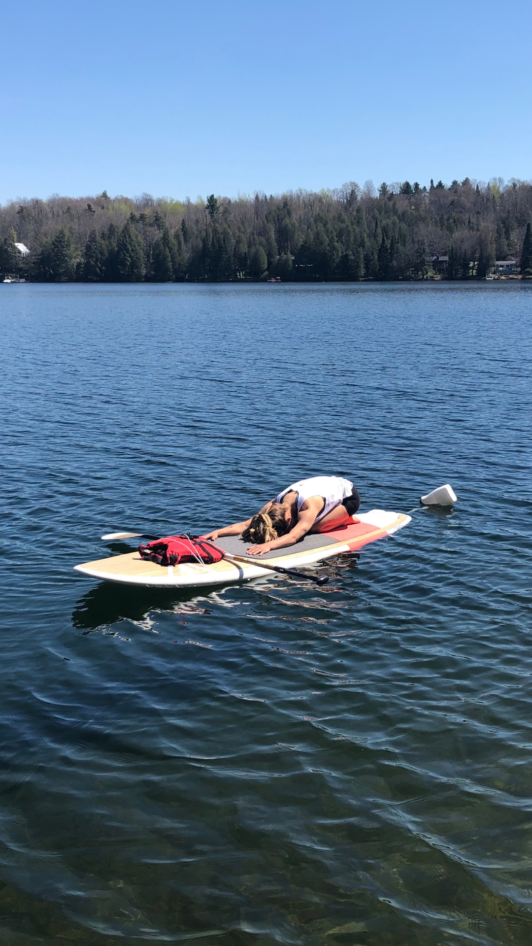 Once you get on the SUP board, even if you practice yoga regularly, you'll notice that everything is different on the water. That's the beauty of SUP yoga: you don't have to take yourself too seriously and everyone is a beginner on the water. You have to tame the postures with a lot of patience and resilience. It is this practice that will bring you a better awareness of your body, your breathing and the present moment. It encourages you to slow down.