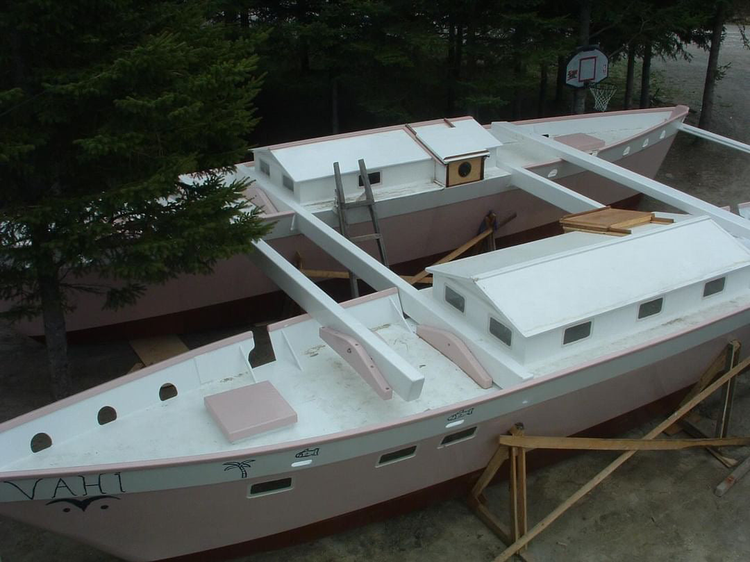 Hughes was initiated into sailing early. His parents, brother, and sister set sail when he was young. For 3 years, they lived on the boat. It wasn't a vacation; it was life: routine, school, sharing tasks. At 9 years old, what Hugues didn't yet know was that, 15 years later, he would renovate the boat originally built by his father. For 4 years, he and Joanie built the electrical system, the propulsion, the connection between the two hulls, and the central cabin, no less.