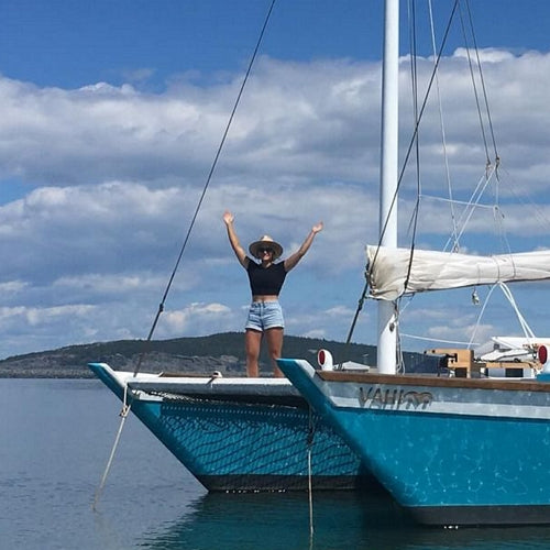 It's been 2 years since they set sail, the three of them – Joanie, Hughes, and Vahi, their 40-foot catamaran (@sailing_vahi). For the past 2 years, our TAIGA ambassadors have been wandering somewhere among the French islands. Their mission? To live on savings, love, and fresh water.