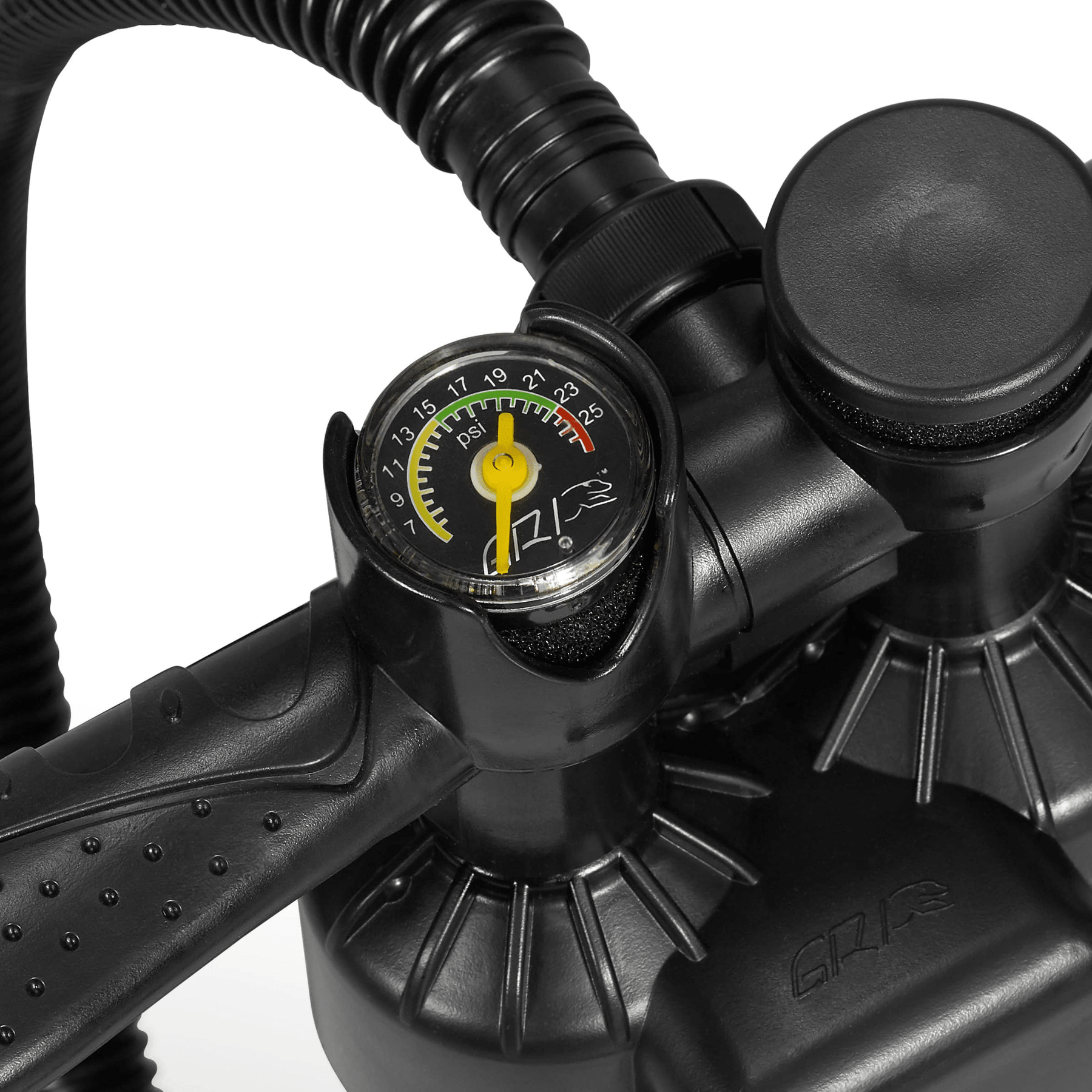 This is the perfect pump for other brands who want to use a triple action pump as standard equipment for their SUP. The built-in dial allows for an easy 3-2-1 switchover requiring less effort than the double action pump.