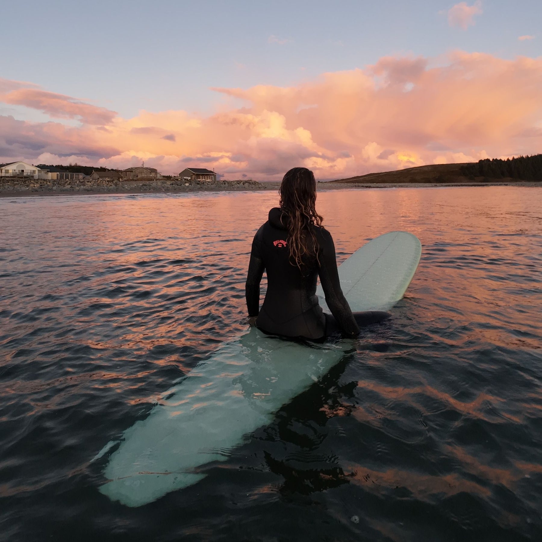 TAIGA Logo on The Longboard Surf Board in The Rosé Color