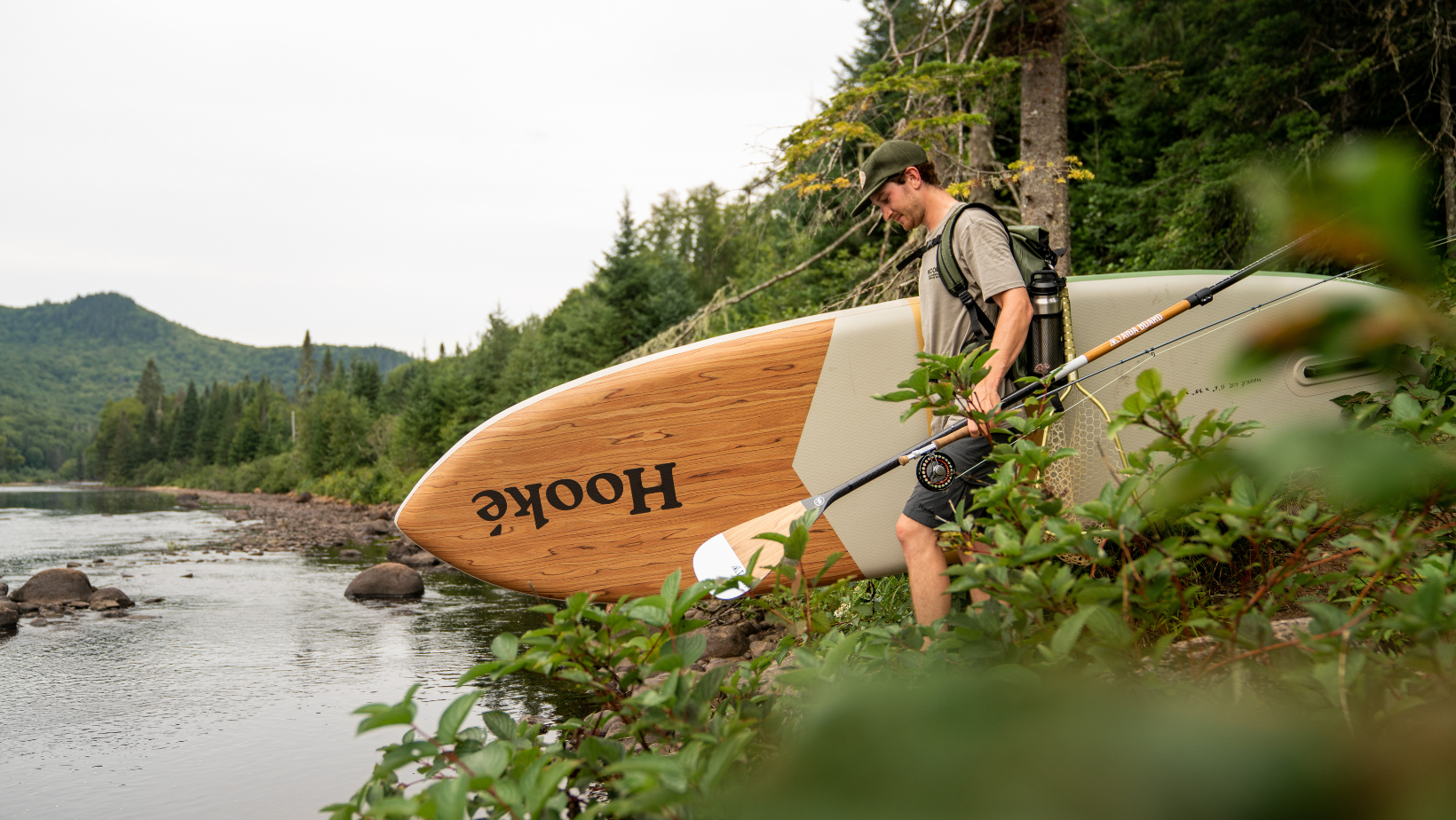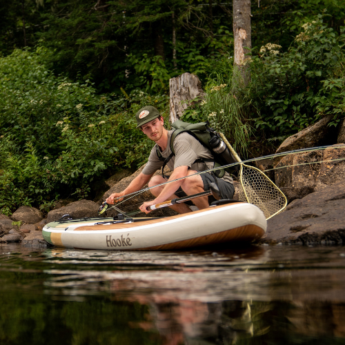 In collaboration with the Quebec company Hooké, we have designed an inflatable paddle board specialized for SUP fishing. The first 2 prototypes were tested on the water in 2020 to ensure its launch in 2021. However, procurement delays have pushed the project back to spring 2022. Our Hooké Air 11'6 is the result of a common passion to promote the joys of life outdoors and on the water. Our paddle board allows you to go fishing in the most remote places.